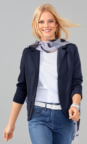 Reversekragen und zwei Taschen. Edel und bequem mit Ton-in-Ton Muster. Jerseyqualität.