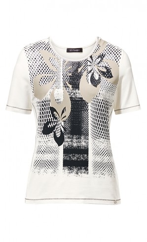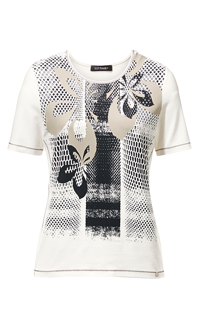 Druckdessin und dezente Ziernähte im Vorderteil.
