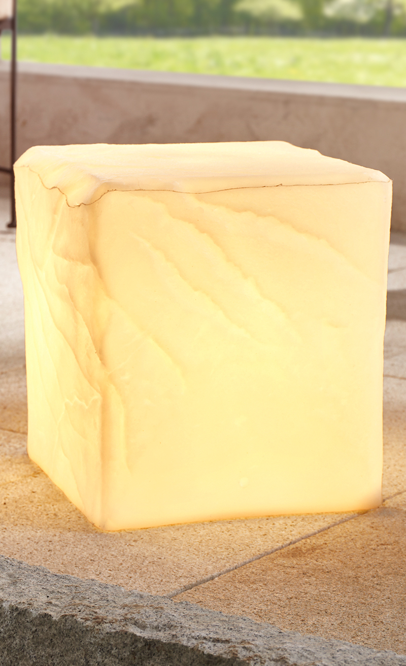 Deko Baustein für den Garten . Aus robustem Kunststoff. Belastbar bis 75 kg. Ob als Terrassenbegrenzug oder als Dekoration. Inkl. Leuchtmittel E27/ max. 60W.