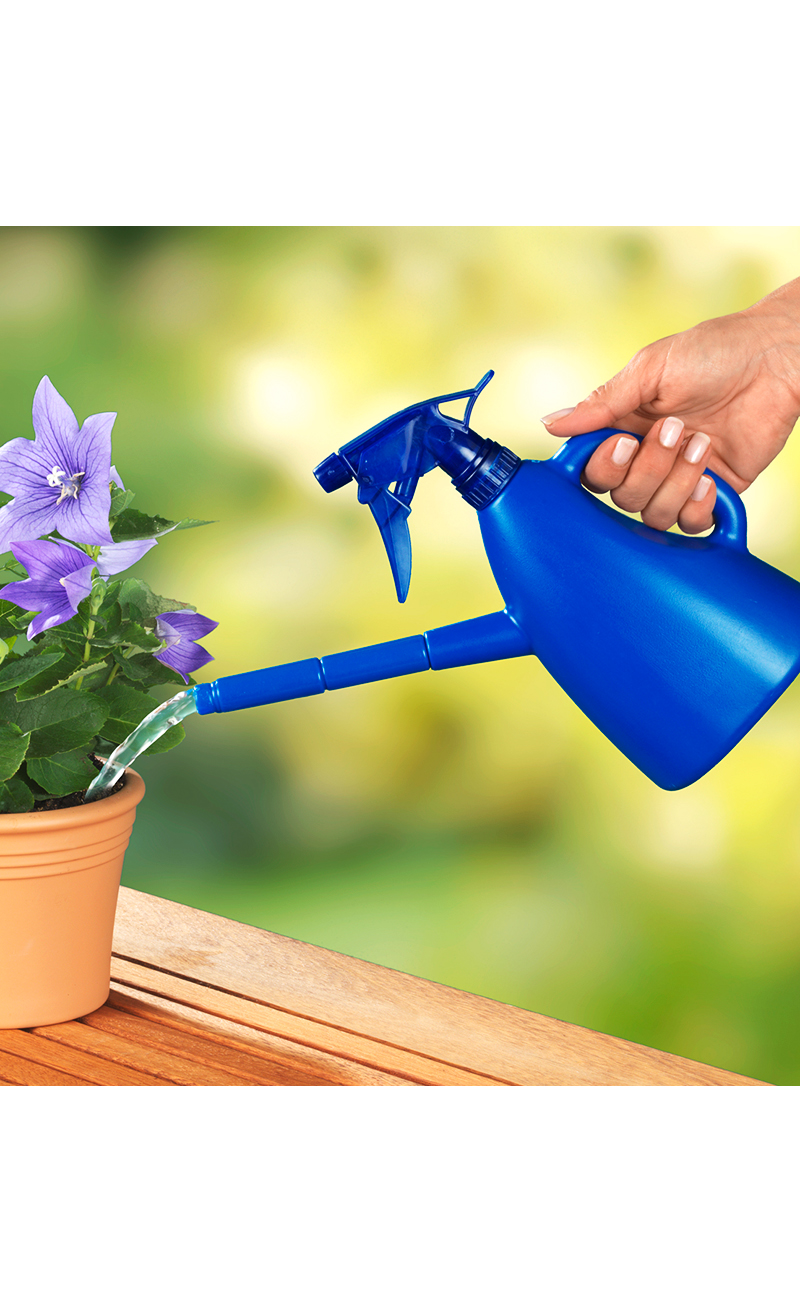 2 spezielle Aufsatzstücke sorgen dafür, dass Sie individuell auf Ihre Pflanzengrösse die richtige Giess- und Brausefunktion anpassen und dosieren können. Kanne 800 ml, inkl. Brausekopf.