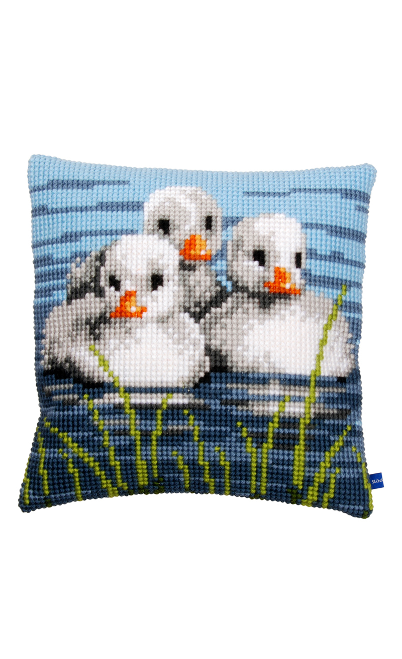 Alle Kreuzstichkissen werden als Set mit vorgedrucktem Stramin, Sticknadel, Garn und Anleitung geliefert.