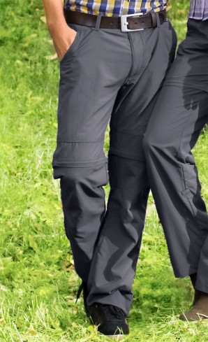 Praktische Taschen mit Reissverschluss. Hose kann mit Reissverschluss zur Bermuda geändert werden. Atmungsaktives und schnell trocknendes Spezialgewebe.