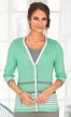 Einsatz uni im V-Ausschnitt. Zierknopfleiste. 3/4-Arm.