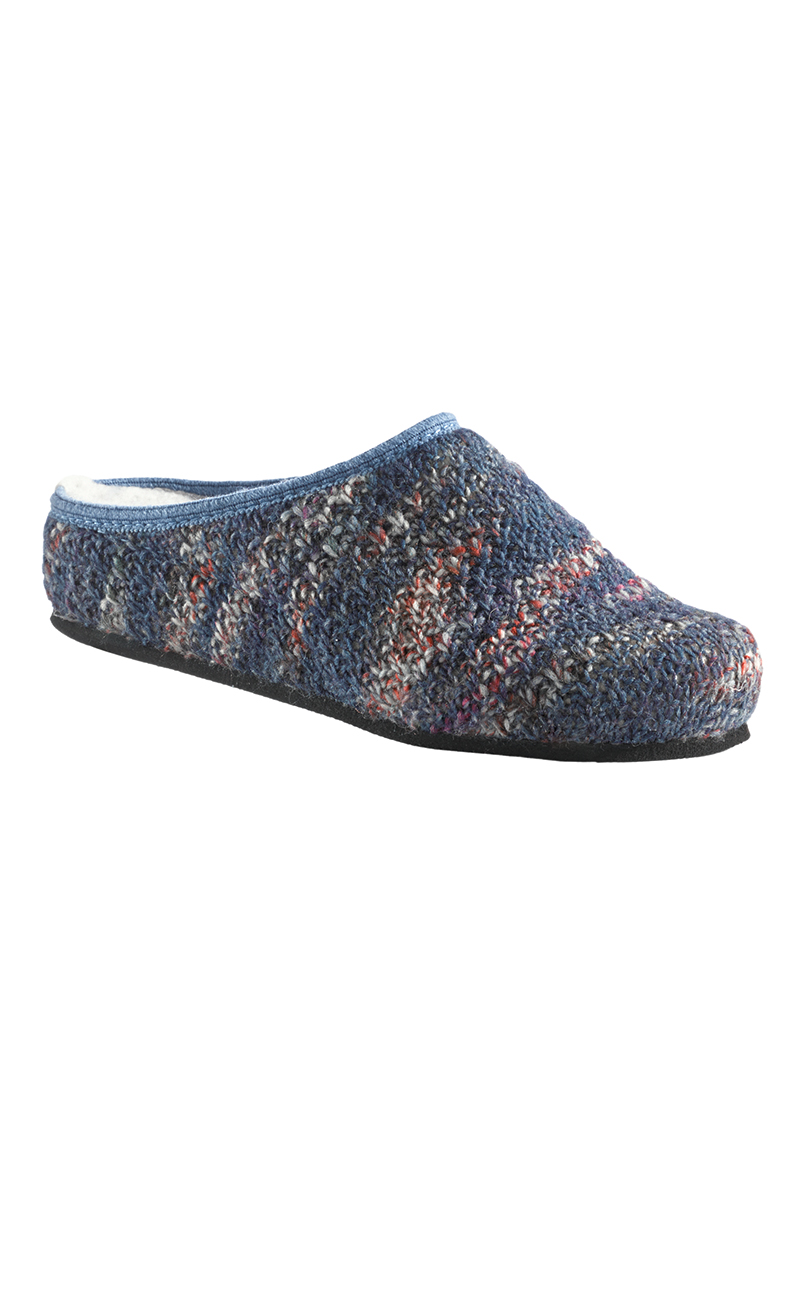 Warm gefütterter Hausschuh in Schlupfform. Rutschhemmende Sohle. Absatz ca. 3 cm.