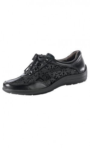 Zum Schnüren. Lederinnenausstattung. Wechselfussbett. Modische Prägeoptik. Rutschhemmende Keilsohle, Absatz ca. 2,5 cm.