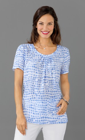 Leicht ausgestellte Form. Ausschnitt in kleine Fältchen gelegt.
