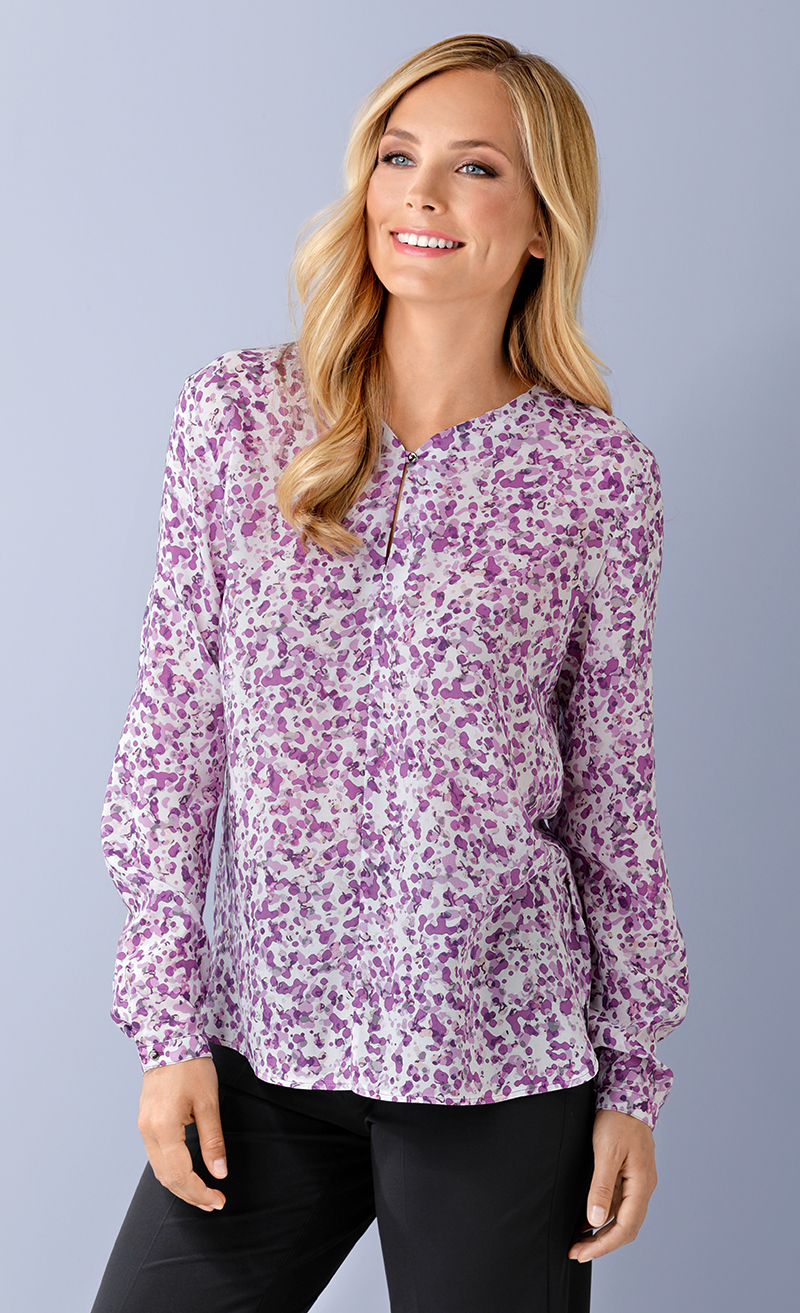 Abgerundeter Saumabschluss mit Seitenschlitzen.