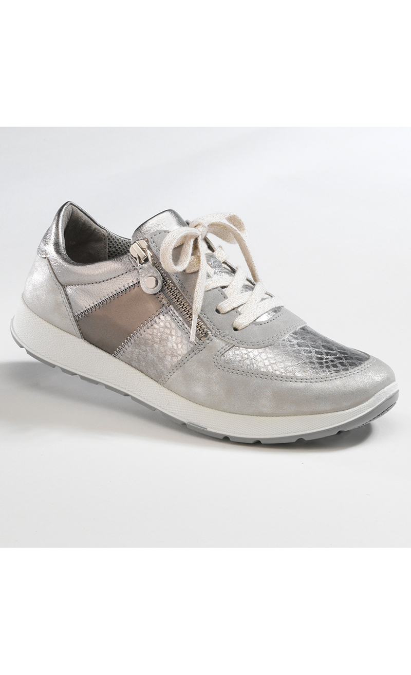 Obermaterial und Innenausstattung im modischen Materialmix Leder und Textil. Schnüroptik mit Reissverschluss. Gepolsterte Relax-Innensohle. Rutschhemmende Laufsohle. Absatz ca. 1 cm.