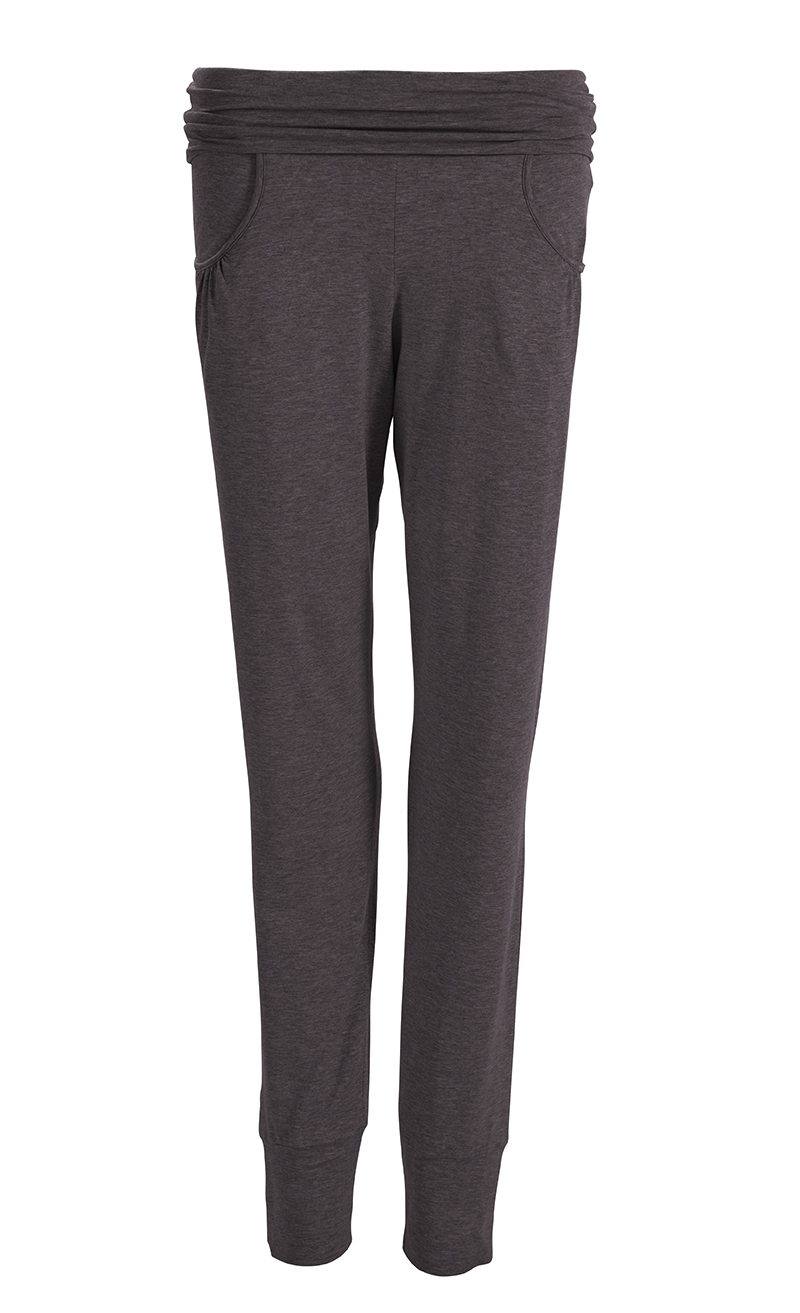 Weicher, nicht drückender und veränderbarer Bund. Bündchenabschlüsse und zwei kleine Eingrifftaschen mit Raffung.
