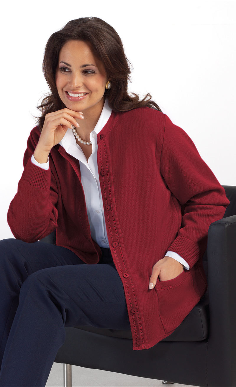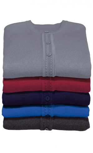 Mit verzierter Knopfleiste. Gerade Form mit zwei Taschen.