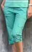 Aufwendig verarbeitete, elastische Krempel-Caprihose mit Reissverschluss und vielen Taschen. Die Hose kann mit Druckknopfbändel in der Länge verändert werden. Popeline.