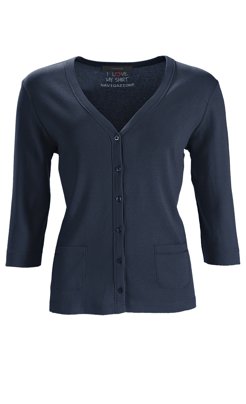 3/4 Arm. Ziernähte, eingefasste Abschlüsse und zwei kleinen Taschen.