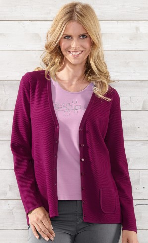 Strickweste mit Strickmuster. Zwei Taschen. Gerade Form.