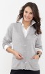 V-Ausschnitt und mit zwei aufgesetzen Taschen.
