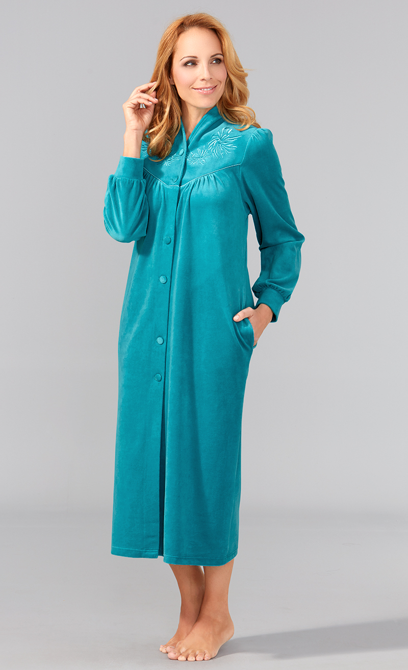Dezente Ton-in-Ton Stickerei. Geraffte Brustparie. Leichte Nikiqualität.