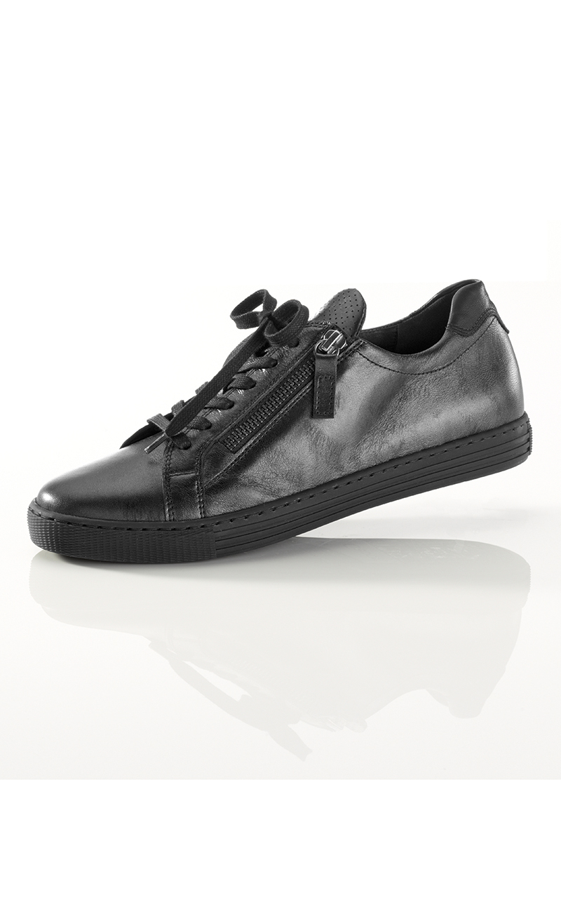 Modische Schnüroptik. Einstieg durch zwei Reissverschlüsse weit zu öffnen. Bequemes Fussbett. Rutschhemmende Sohle. Absatz ca. 2 cm. Weite G.