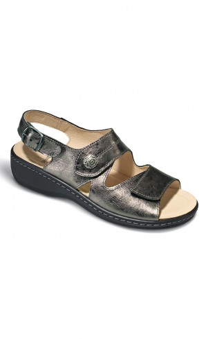 Hochwertiges Leder. Vario-Komfort-Fussbett, ideal zum Auswechseln oder zum Einlegen der eigenen orthopädischen Einlagen. Mit Leder gefüttert. Verstellbare Klettverschlüsse und Fersenriemen mit Schnalle. Rutschhemmende PU-Laufsohle. Flexibel und stossdämpfend. Absatz 3 cm. Weite H.