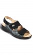 Hochwertiges Leder. Vario-Komfort-Fussbett, ideal zum Auswechseln oder zum Einlegen der eigenen orthopädischen Einlagen. Mit Leder gefüttert. Verstellbare Klettverschlüsse und Fersenriemen mit Schnalle. Rutschhemmende PU-Laufsohle. Flexibel und stossdämpfend. Absatz 3 cm. Weite H.