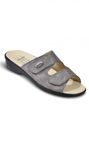 Mit weichem Leder gefüttert. Zwei verstellbare Klettverschlüsse. Rutschhemmende PU-Laufsohle. Sohlen- und Bodenkonstruktion ist flexibel und äusserst stossdämpfend. Schont nachhaltig Wirbelsäule und Gelenke. Keilabsatz ca. 3 cm. Weite G.