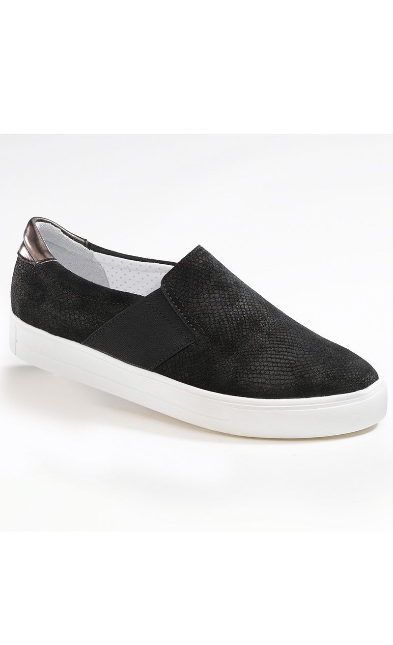 Mit seitlichem Elast für bequemes An- und Ausziehen. Loses Fussbett, welches bei Bedarf herausgenommen werden kann. Innen weich gepolstert. PU-Weichtrittsohle. Absatz 2.5 cm.