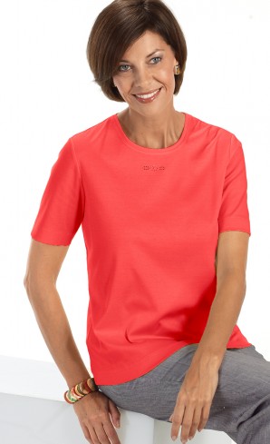 Gerade Form mit Verzierung am Dekolleté.