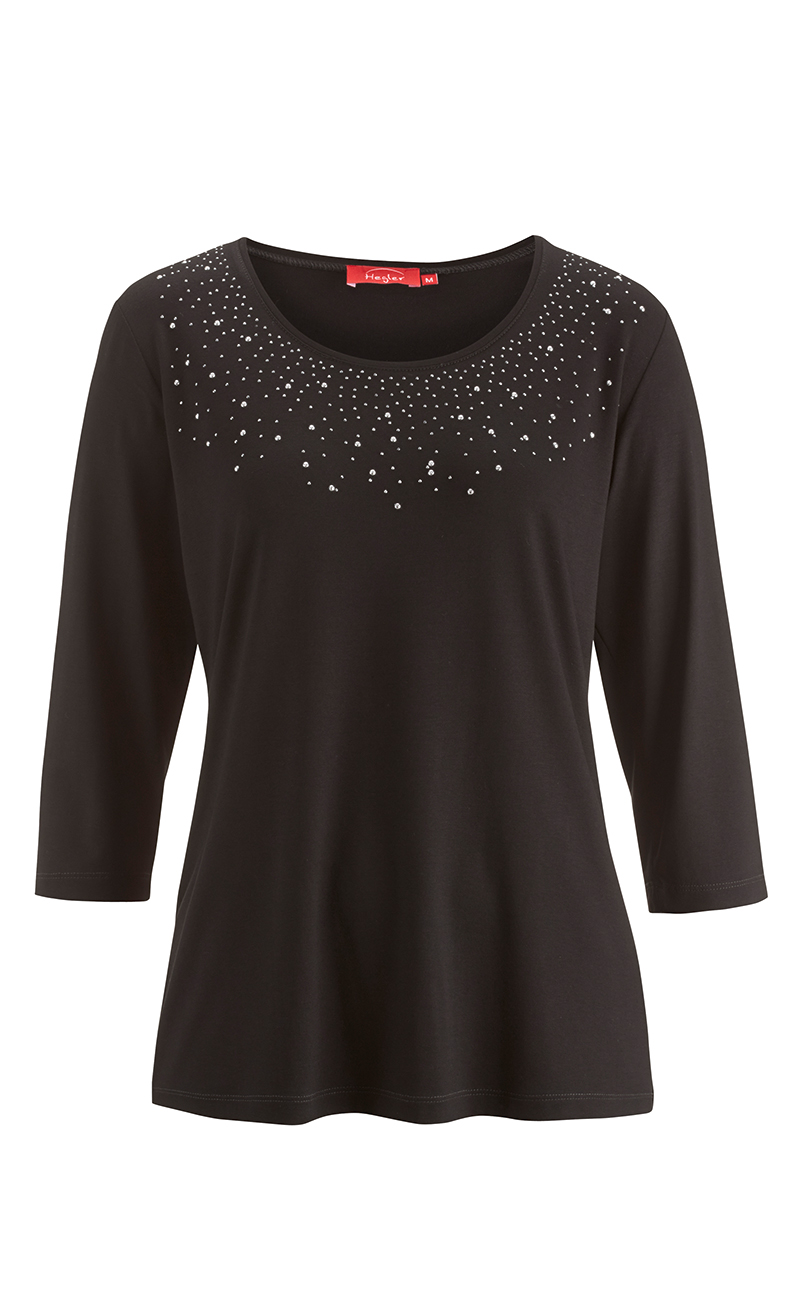 Shirt. Plättchenverzierung am Ausschnitt. 3/4-Ärmel.