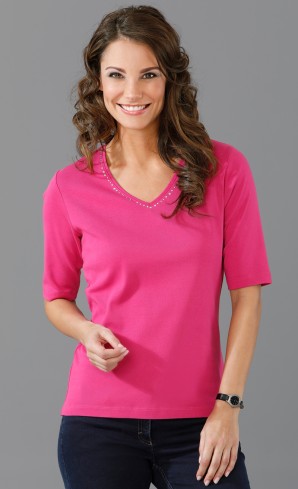 Strassverzierter V-Ausschnitt. Aus biologischer Baumwolle.