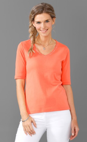 Strassverzierter V-Ausschnitt. Aus biologischer Baumwolle.