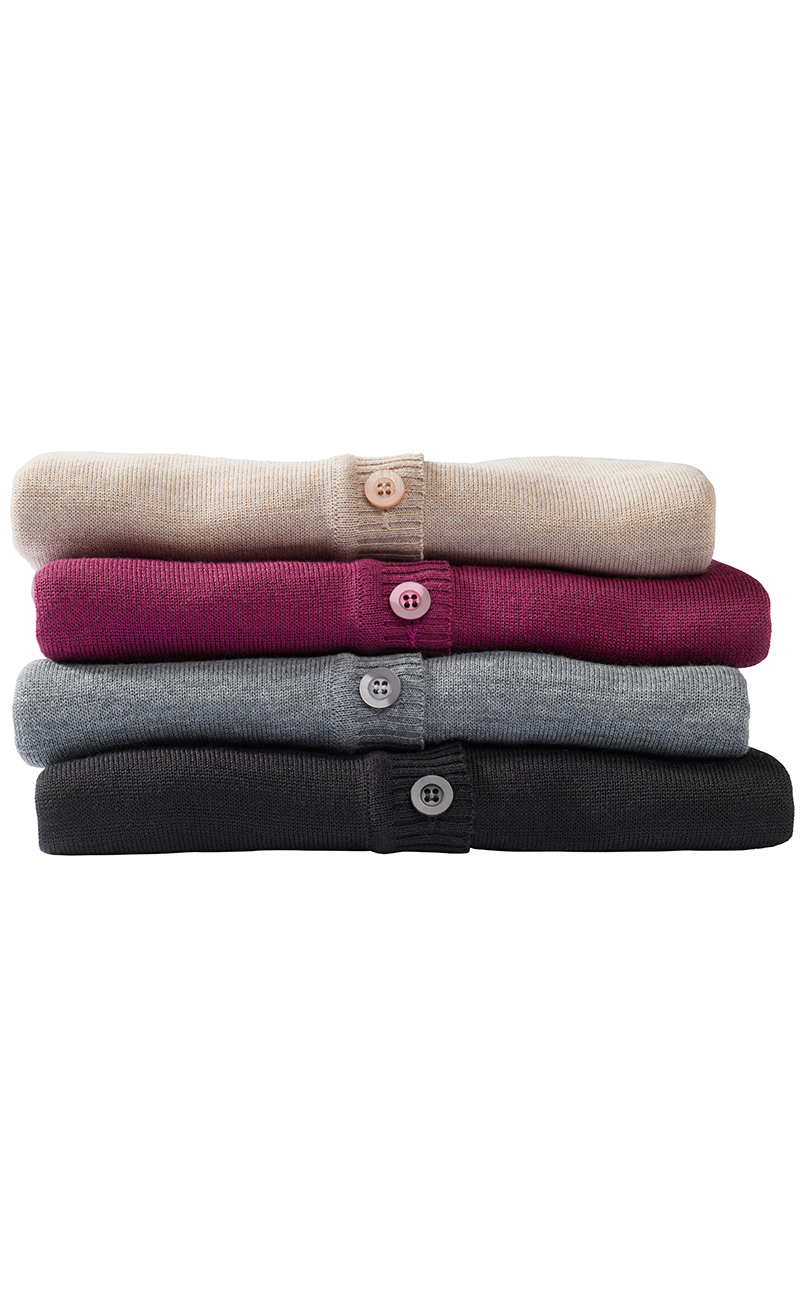 Strickjacke mit V-Ausschnitt und zwei aufgesetzen Taschen.