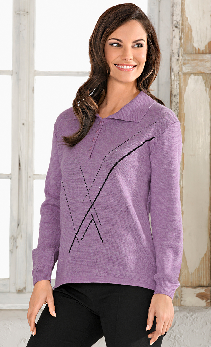Polokragen und Knopfleiste. Gerade Form mit Seitenschlitzen.