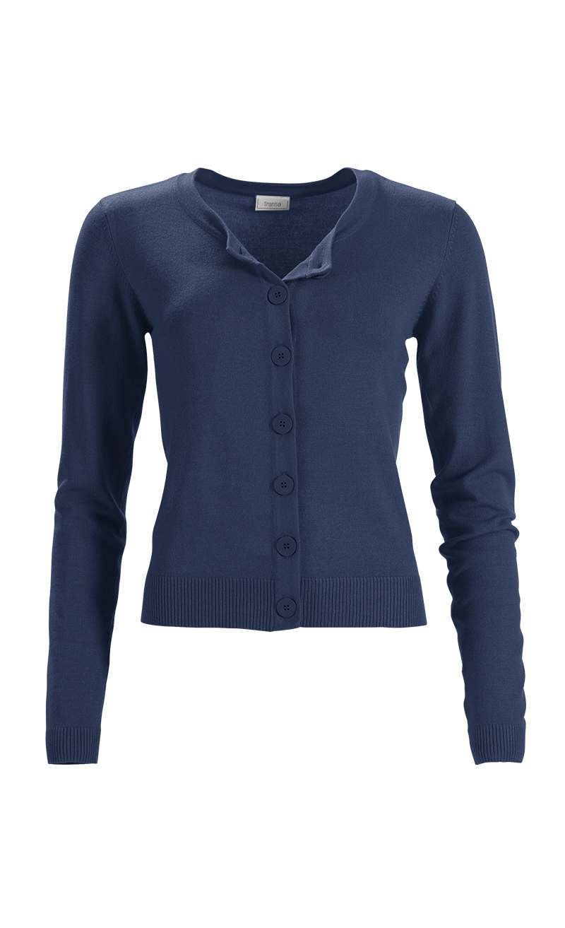 Leichte Strickjacke mit breiten Rippabschlüssen am Ärmel und Saum.