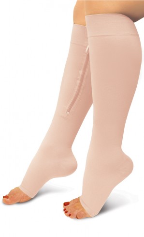 Mit praktischem Reissverschluss für einfaches An- und Ausziehen. Bestmögliche Stützfunktion! Dank offener Strumpf-Spitze ideal bei Hammer- oder Ballenzehen. Strümpfe können links oder rechts getragen werden.