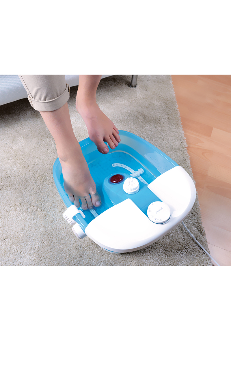 Entspannende Sprudel- und Vibrationsmassage oder einfach die kalten Füsse aufwärmen. Mit Wasser-Warmhaltefunktion, wohltuendem Rotlicht, drei auswechselbaren Pedikür Aufsätzen. Massagerollen für Fussreflexzonen-Massage sowie Massageunterstützendes Fussbett. Trockenmassage-Funktion. Komfortable bis Schuhgrösse 46.