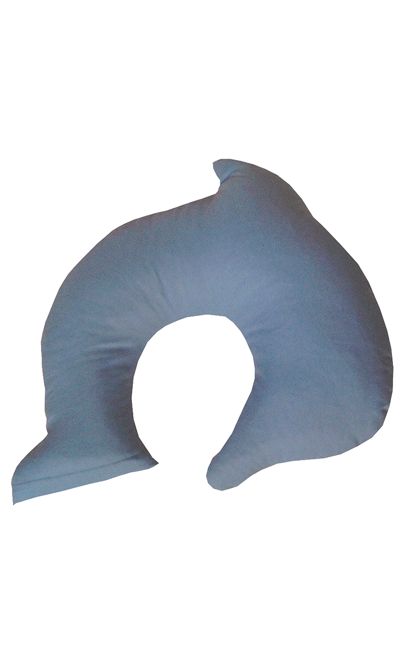 Zum Reinkuscheln oder zur gezielten Entspannung. Passt sich der Körperform an. Als grosses Motivkissen in Form eines Delphins. Füllung Dinkelspreu aus kontrolliert biologischem Anbau.