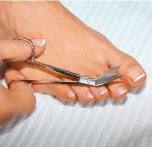 Dank ihrer speziellen Form macht diese Nagel-Schere endlich Schluss mit eingewachsenen Fussnägeln. Einfach Nagel entlang der Schere abschneiden. Fertig! So leicht kann Nagelpflege sein.