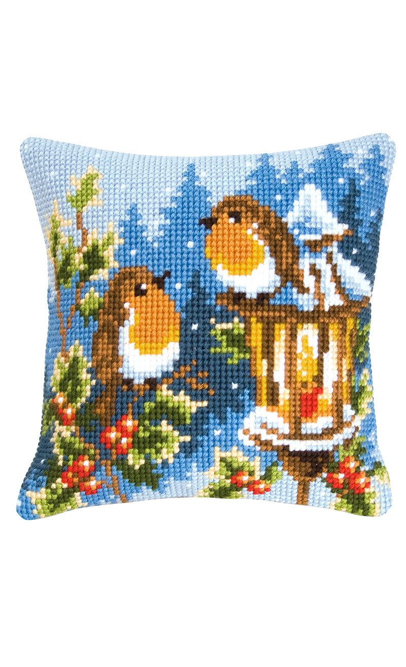 Kreuzstichkissen wird als Set mit vorgedrucktem Stramin, Sticknadel, Garn und Anleitung geliefert.