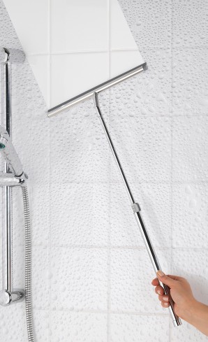 Trocknet Glas im Handumdrehen ohne Kraftaufwand. Doppel-Abziehlippe mit praktischem Teleskop-Stiel. 37-59 cm. Edelstahl, Gummi.