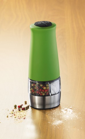 Würzen Sie auf Knopfdruck ohne jede Mühe. Zwei separate Kammern für Salz und Pfeffer oder andere Gewürze. Mit 2 hochwertigen Keramik-Mahlwerken und LED-Leuchte für punktgenaues Würzen. (6 x 1,5 V AA Batterien) AA Batterien siehe Seite 218. Ca. 7,2 x 17,5 x 7 cm.