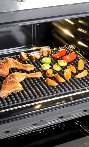 Knuspriges Backen - überschüssiges Fett läuft ab. Kein Anhaften. Lebensmittelechtes Silikon, spülmaschinengeeignet.