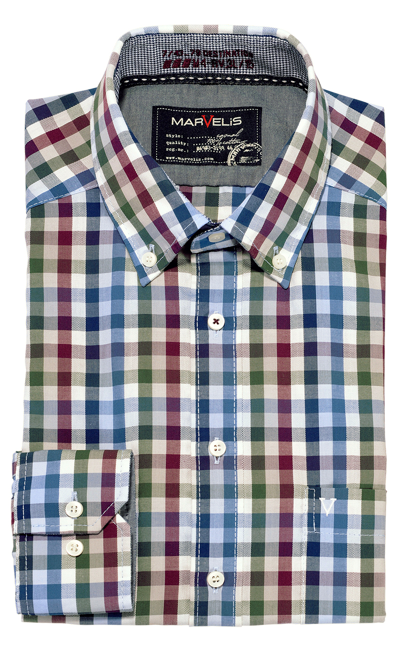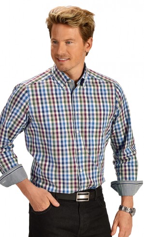 Rassiges, aufwendig verarbeitetes Hemd mit einer Brusttasche und innen farblich abbgesetzten Manchetten und Knopfleiste. Jacquard-Gewebe.