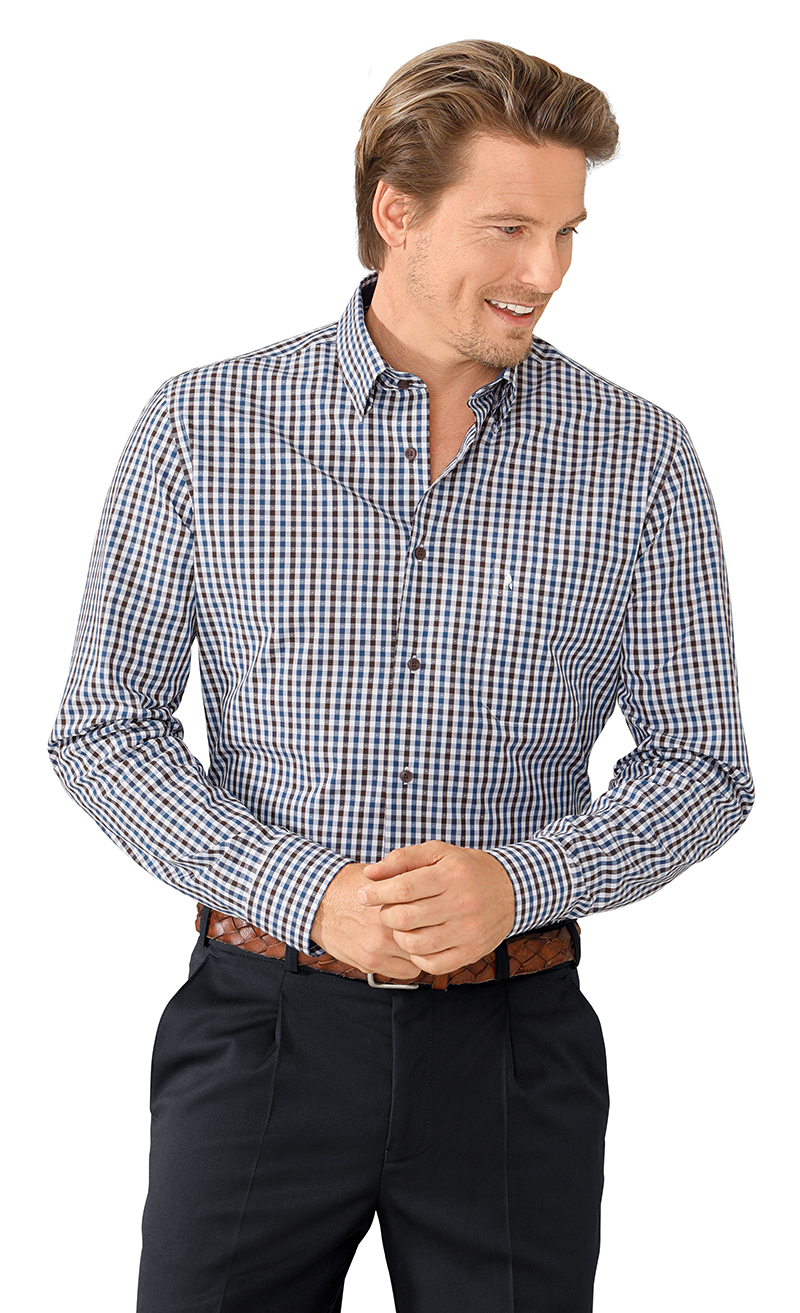 Kent Kragen, eine Brusttasche. Kragen und Manschetten farblich unterlegt.