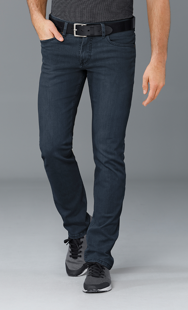 Unsere Beste. 5-Pocket-Form. Gerader Schnitt, normale Leibhöhe, normale Knieweite, gerades Bein. Fussweite ca. 38 cm. In drei verschiedenen Schrittlängen. Bequeme Passform durch Elasthan-Anteil.