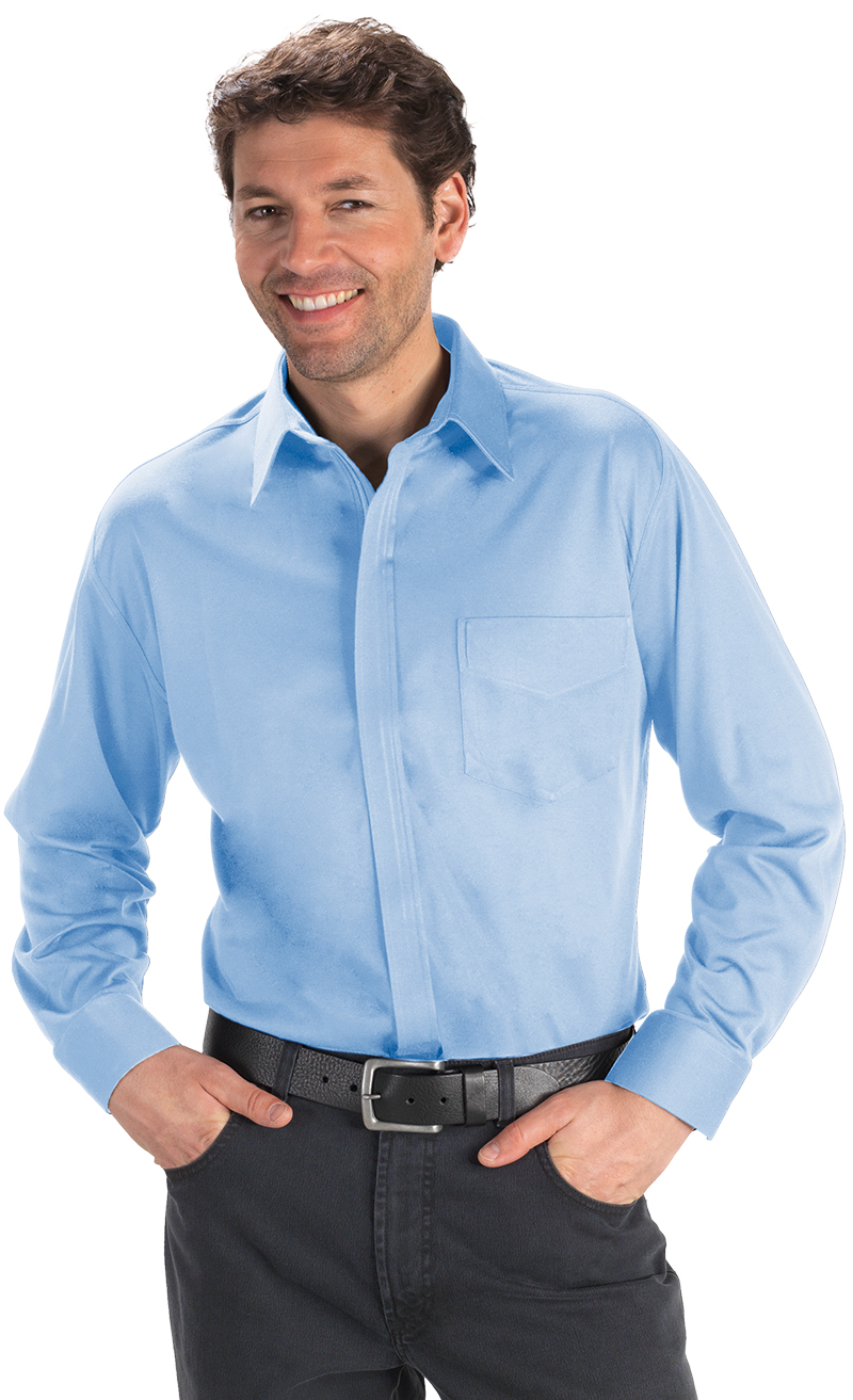 Langarmhemd mit klassischem Kragen und einer Brusttasche. Verdeckte Leiste mit Reissverschluss. Doppeljerseyqualität aus