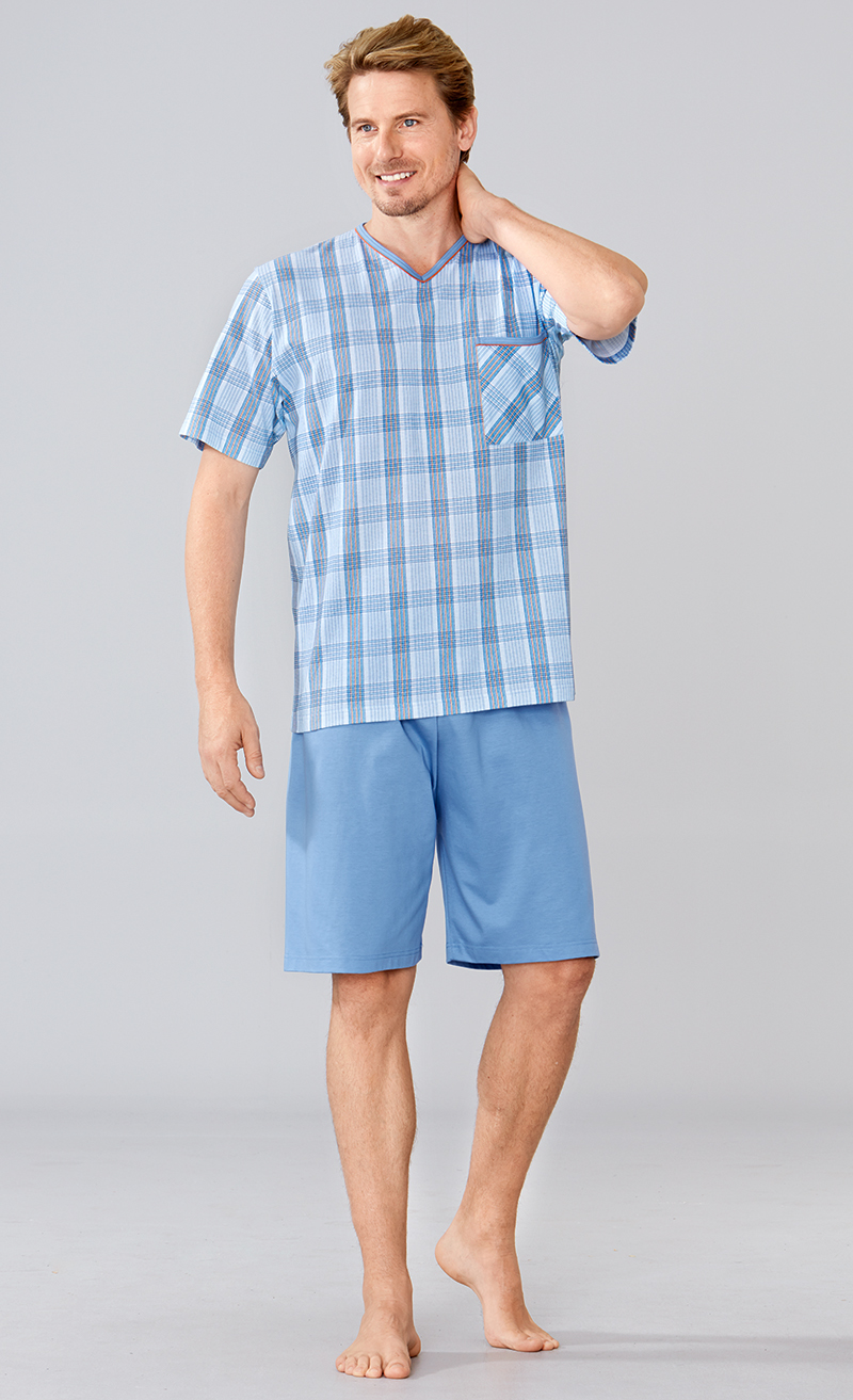 Passepoilierter V-Ausschnitt. Eine Brusttasche. Mercerisiert. Single Jersey.