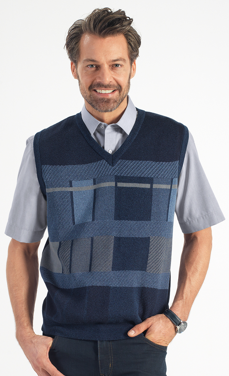 Nicht kratzender Debardeur mit schönem dezentem Jacquardmuster. Pflegeleichte Qualität.