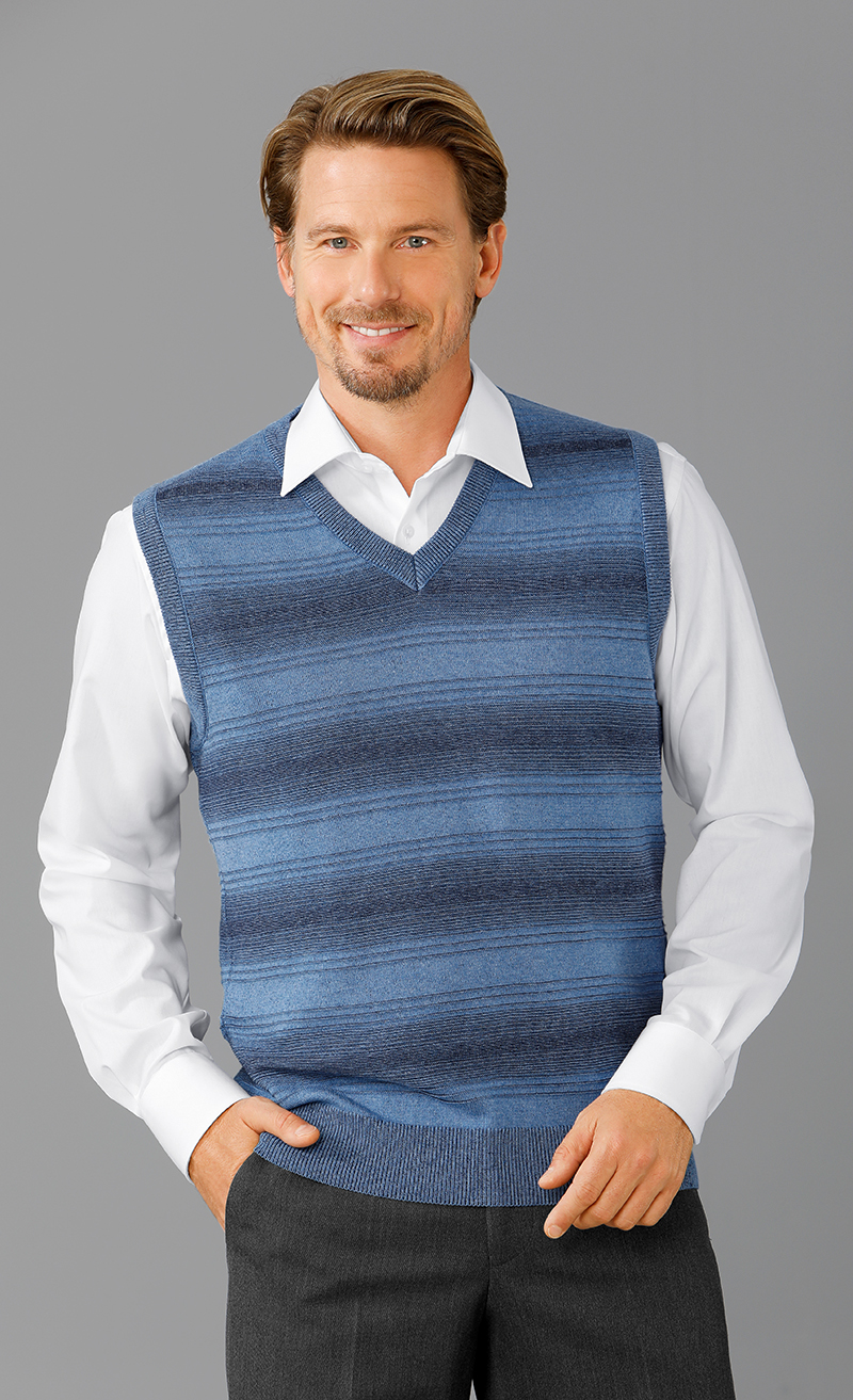 Dezente Farbmusterung, leichte Melangeoptik. V-Ausschnitt
