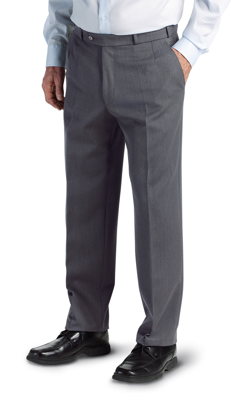 Ohne Bundfalten mit Dehnbund. Mit Kniefutter, zwei seitlichen und zwei Gesässtaschen. Elastische Qualität.