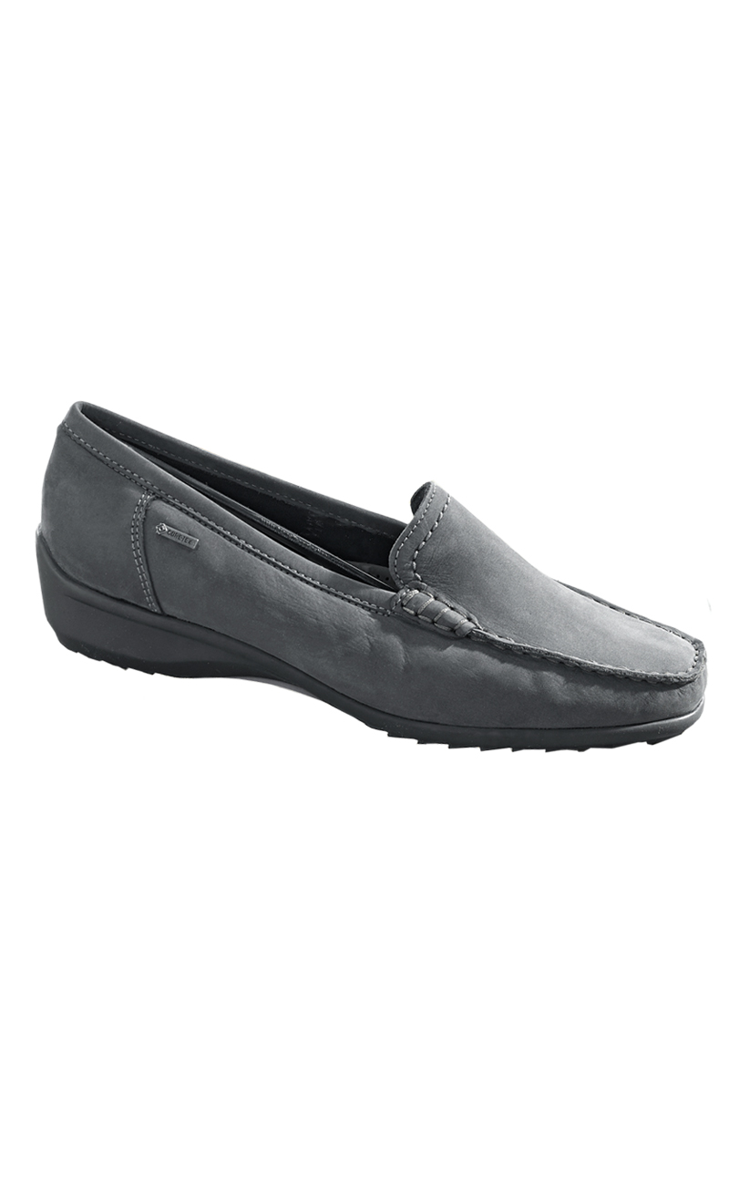 GoreTex® Membran: dauerhaft wasserdicht, hoch atmungsaktiv, besonders langlebig. Rutschhemmende PU-Keilsohle. Weiches Fußbett. Absatz ca. 3 cm. Weite G.