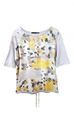 Kurzarm mit Bluseneinsatz. Saumabschluss mit Kordel verstellbar.