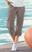 Sehr bequeme Caprihose mit elastischem Schlupfbund, Kordelzug und zwei Taschen. Eine Beintasche und verstellbare Beinweite. Angenehme und pflegeleichte Webware.